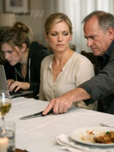Across from me, my mother clutched the stem of her wineglass so tightly I could see the tendons standing out along the back of her hand. The deep red liquid trembled with every minute vibration of her body. She had put on one of her old cashmere dresses for this dinner, navy with a draped neckline, the kind of dress she used to wear to charity events where people applauded auctions they would later write off on taxes. Her lipstick was too bright for the room, too careful, and it had left a perfect crimson print on the rim of the crystal. She was not looking at the knife.